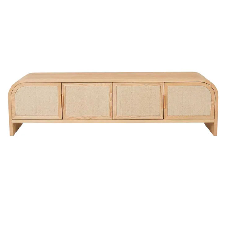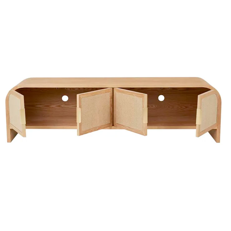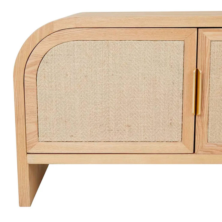 Classic storage gets an update with the Chloe Arc entertainment unit. Finished in veneer with a curved case this unit embraces a waterfall form and instils it with contemporary flair by means of natural texured weave door panels.