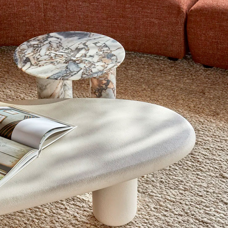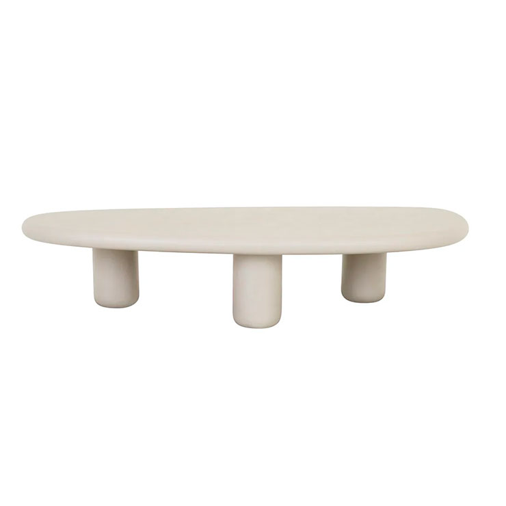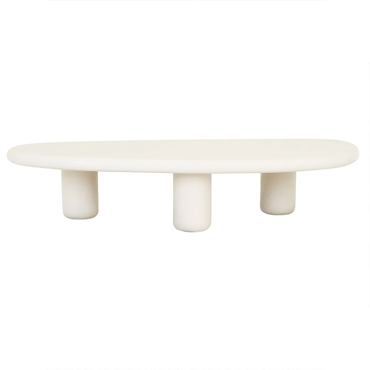 The Elba Coffee Table in Rope draws inspiration from the softly shaped pebbles and white sands of the Tuscan Elba coastline. Featuring an organic-shaped top, rounded pillar legs and a hand-applied mineral plaster finish in a soft Rope hue, this contemporary coffee table brings natural elegance and sculptural beauty to any indoor space.