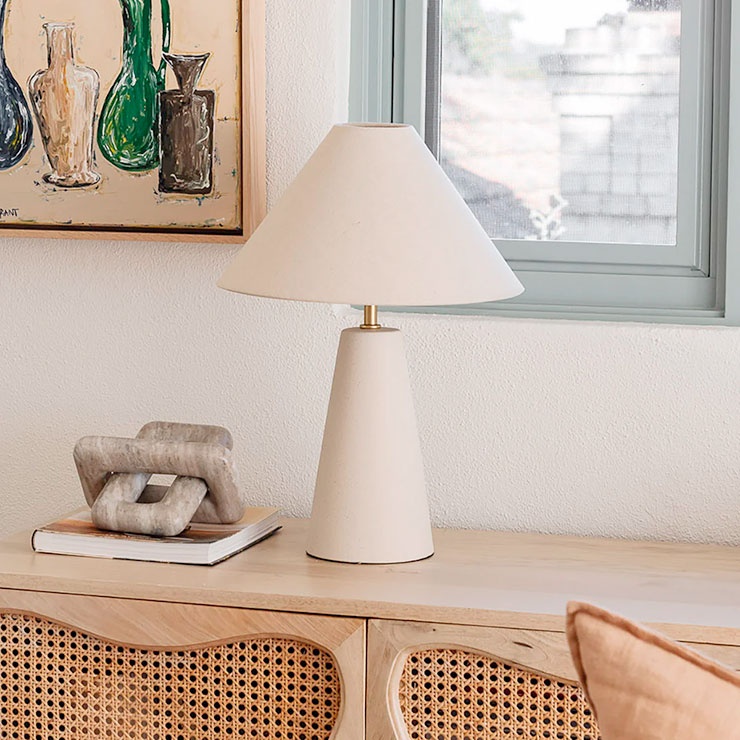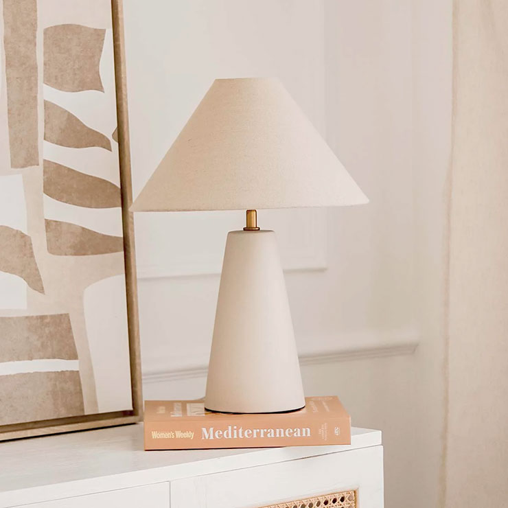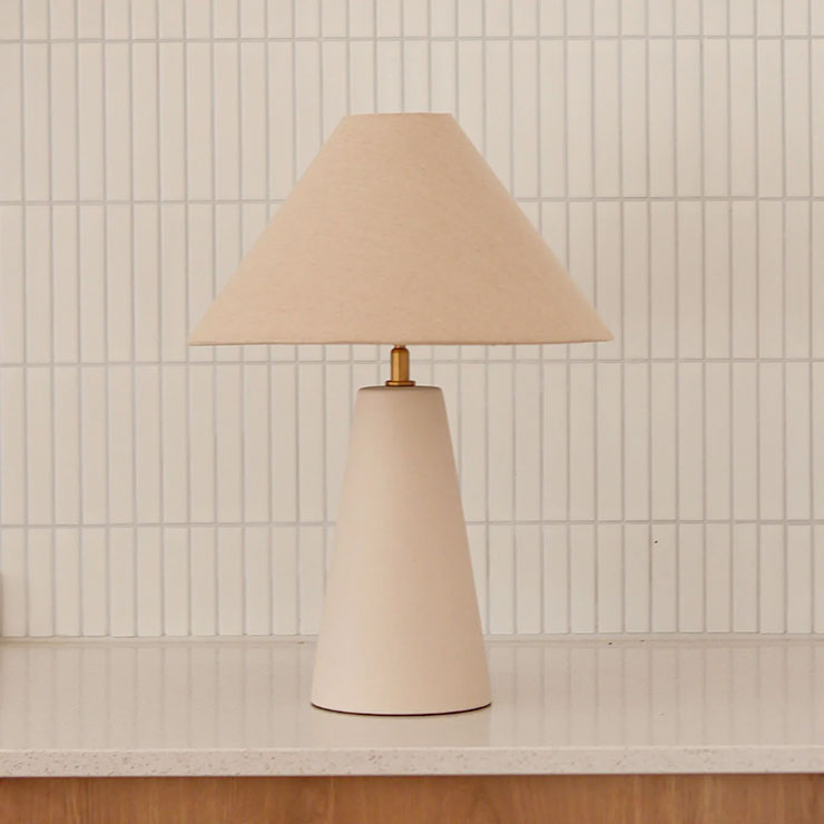 The Florence Table Lamp gives beautiful shape and elegance to your home. With a natural hue and feature tapered shade and base, it’s the perfect accent addition that seamlessly blends into any space. The lampshade is handmade and made of recycled linen which allows for natural imperfections, texture and surface inconsistencies or variances in fabrics. These are not considered faults.