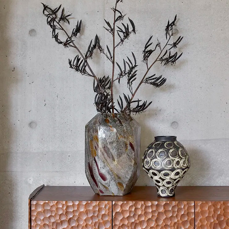 Water-tight construction ensures practical functionality while maintaining sculptural elegance, perfect for fresh-cut arrangements or standalone artistic display.