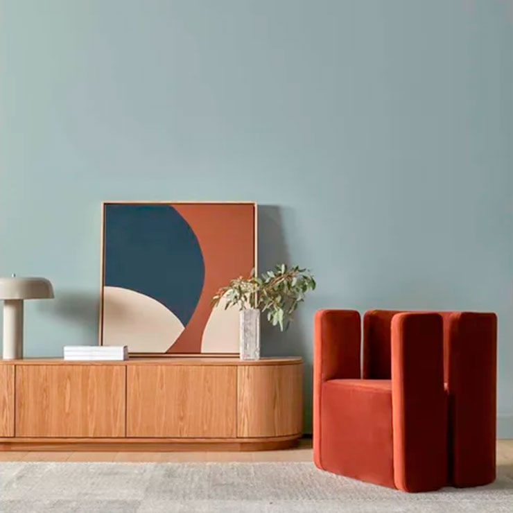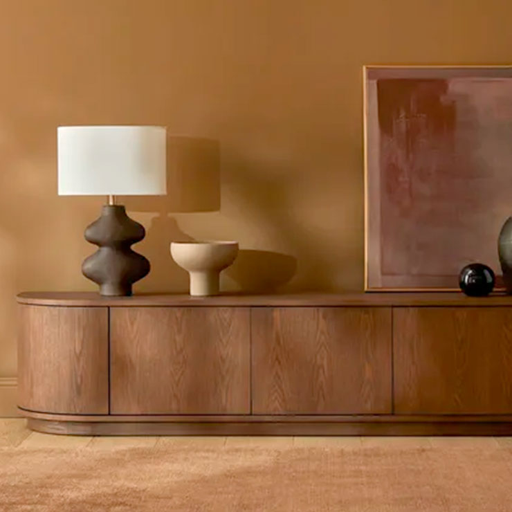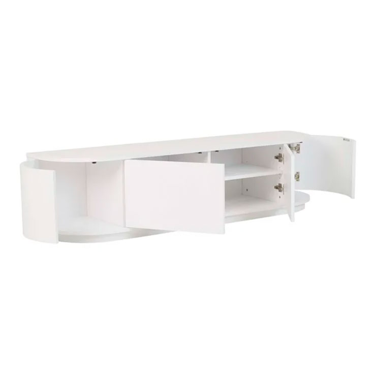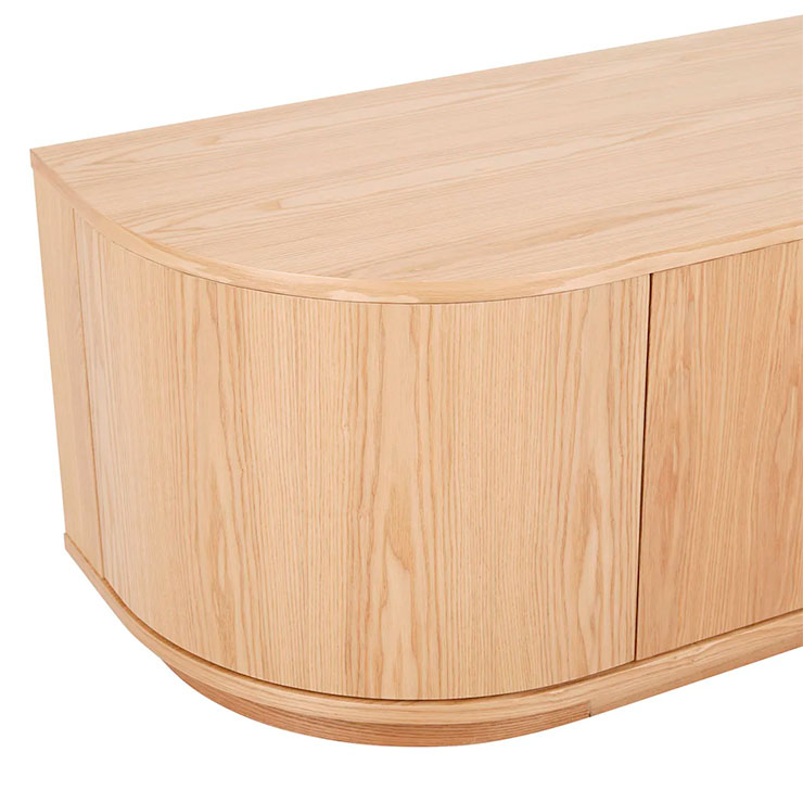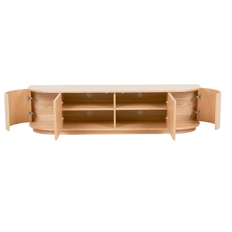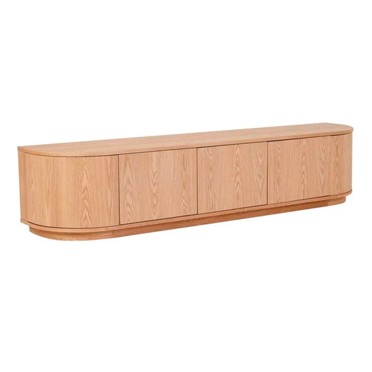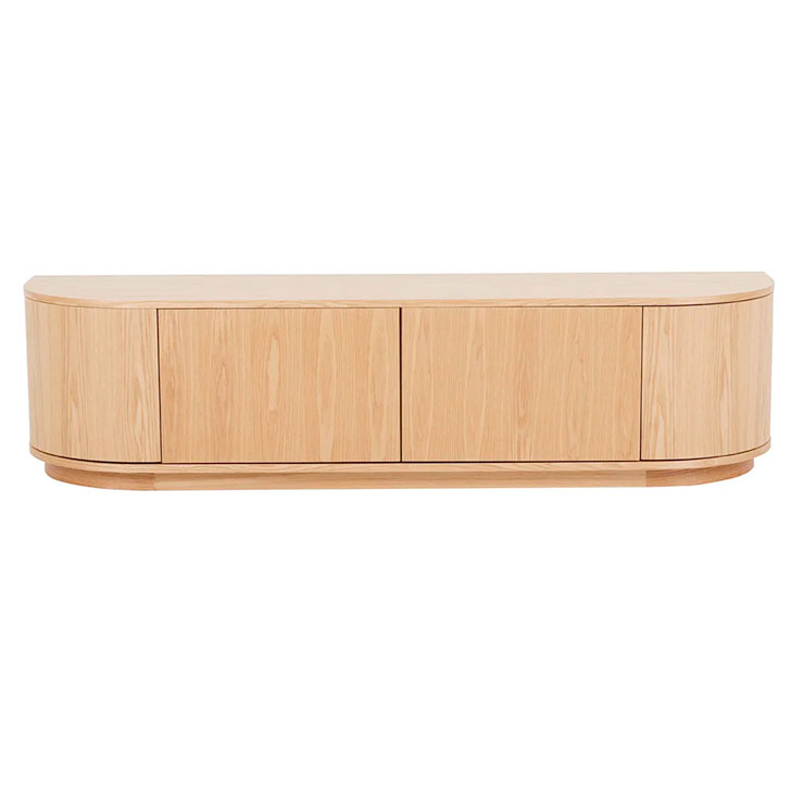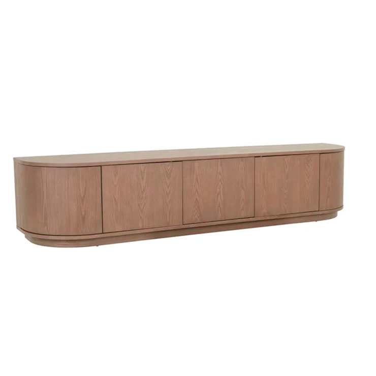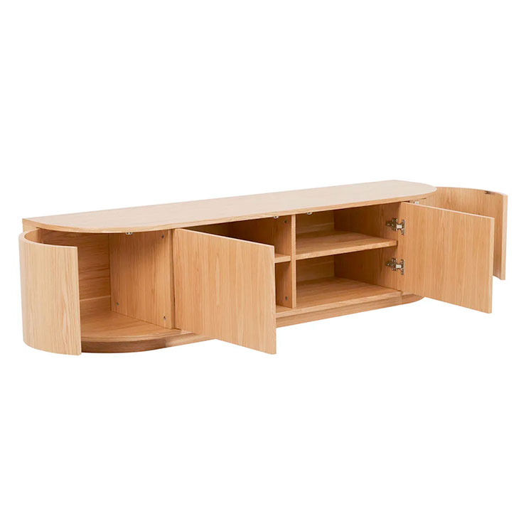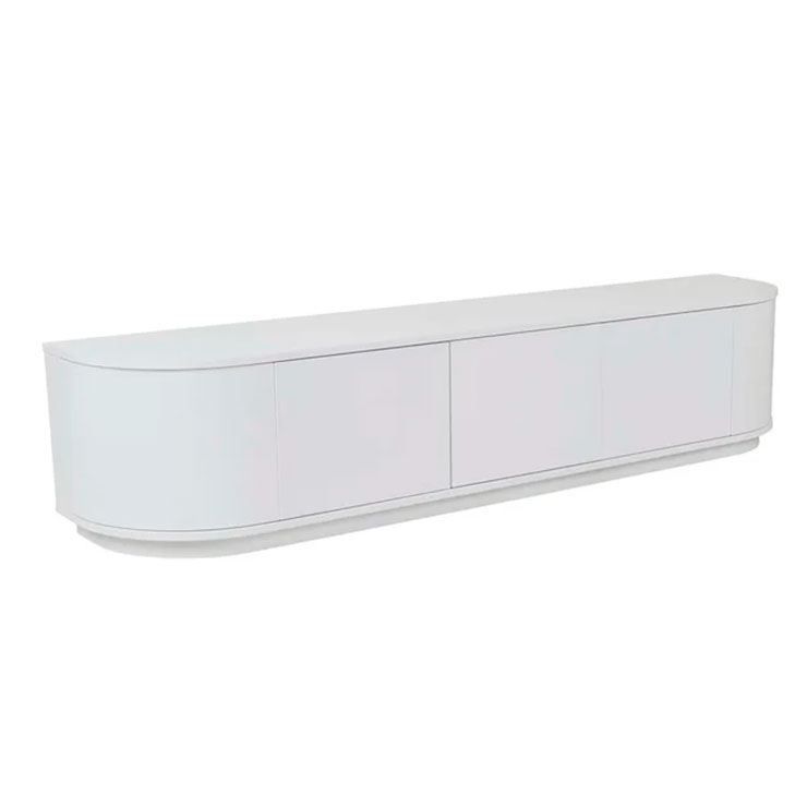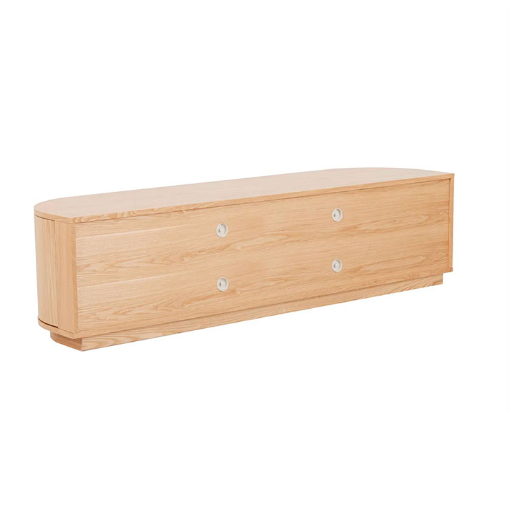 With beautifully rounded corners, the Oberon Crescent Entertainment unit is a sophisticated choice for living space. It has ample interior space and a clean, crisp look on the exterior. It is designed in timber veneer for a slick finish.