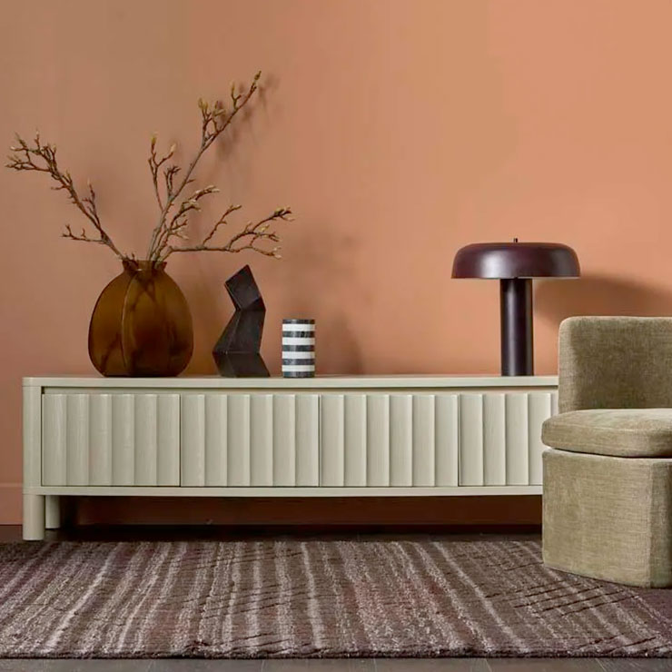 Elegant pillar legs, fluted details, and a sophisticated style add to the appeal of the Oliver entertainment unit. Finished with veneer and discreet shadowline handles this unit is natural choice for a well-appointed classic space.