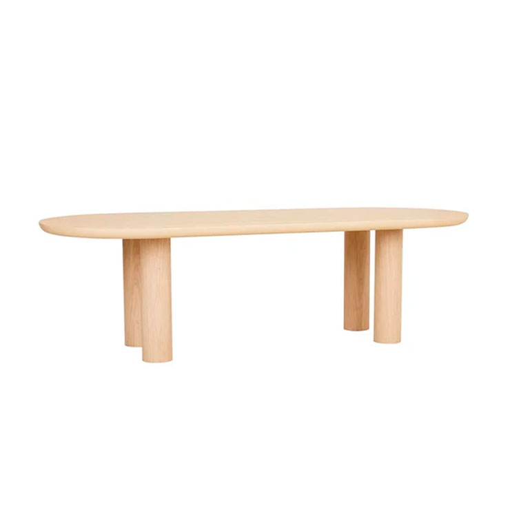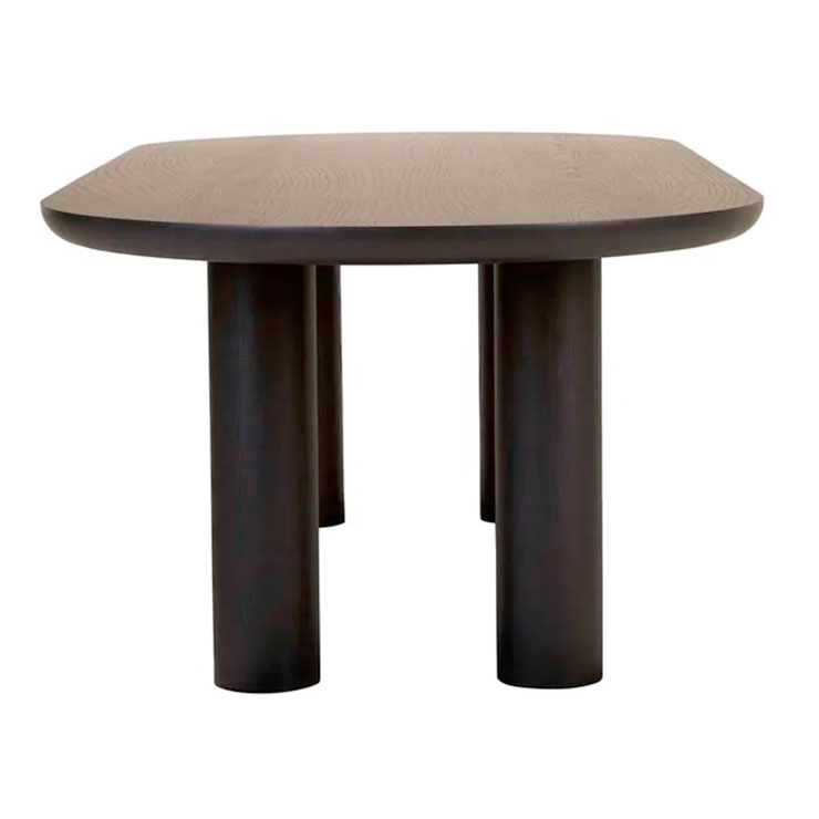 Oak veneer Dining Table in Natural Oak or Black Oak with 2 size variations. Oval top with four round pillar legs