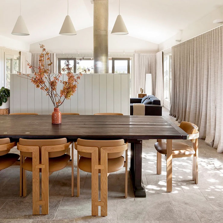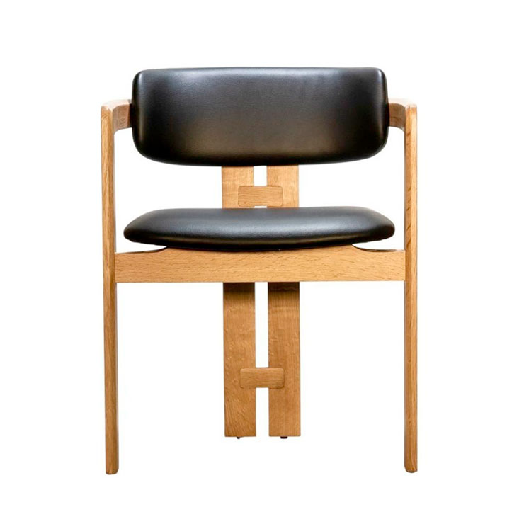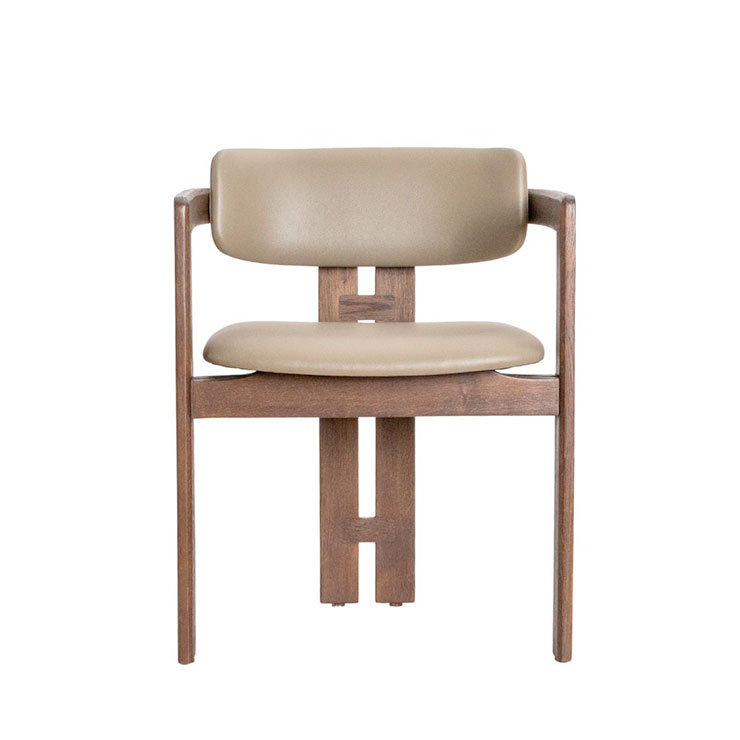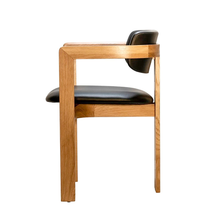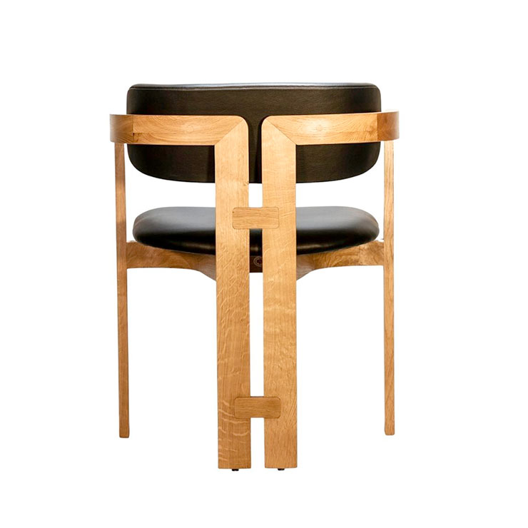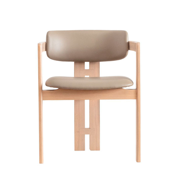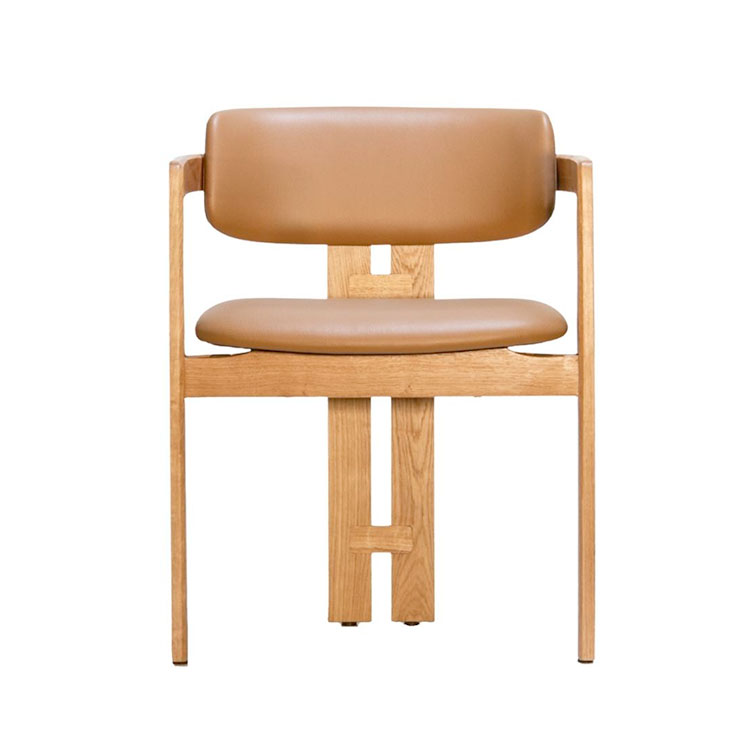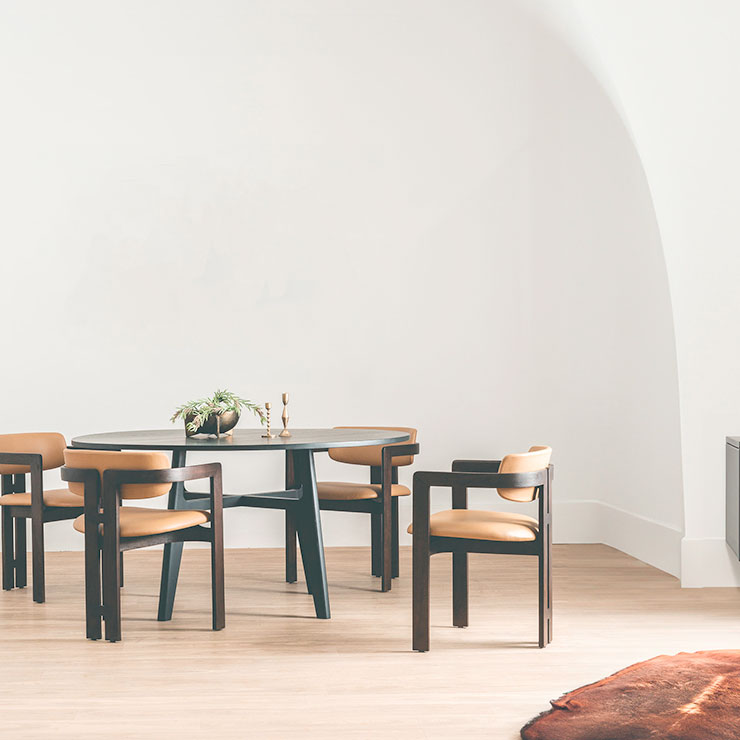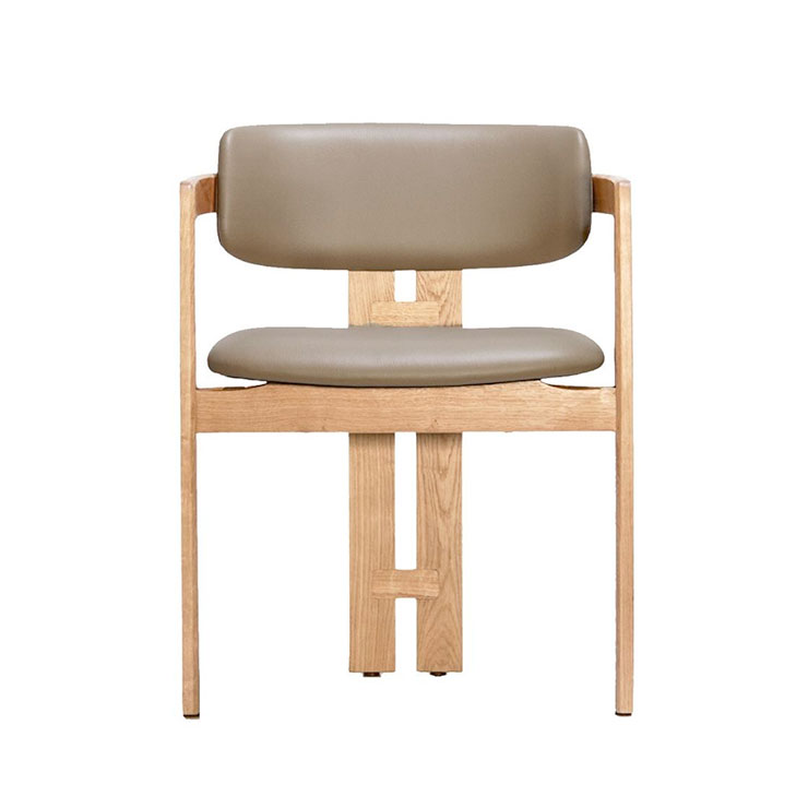 The Taran Chair boasts a unique blend of elements, featuring a rounded backrest paired with sleek, straight wooden legs. This dynamic contrast creates a striking and contemporary aesthetic.